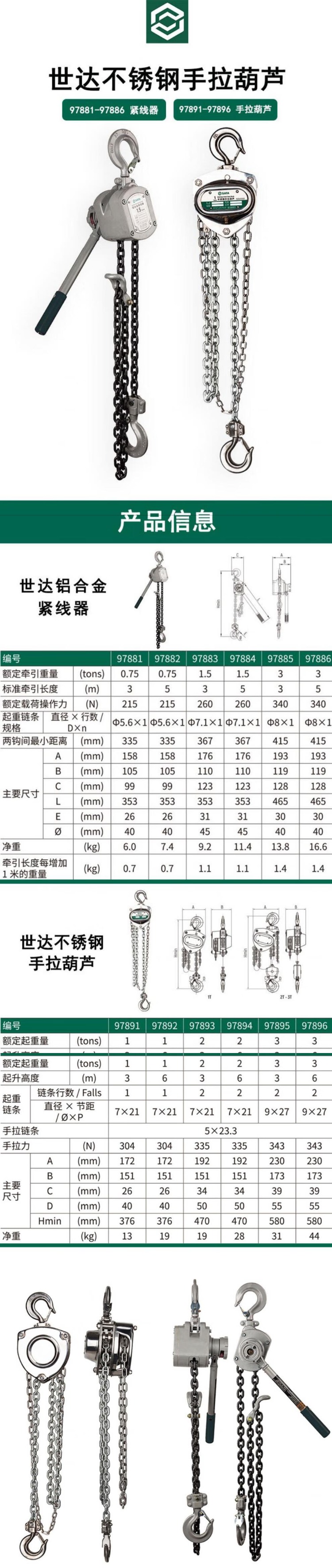 世达 不锈钢手拉葫芦 2 公吨 3 米 97893