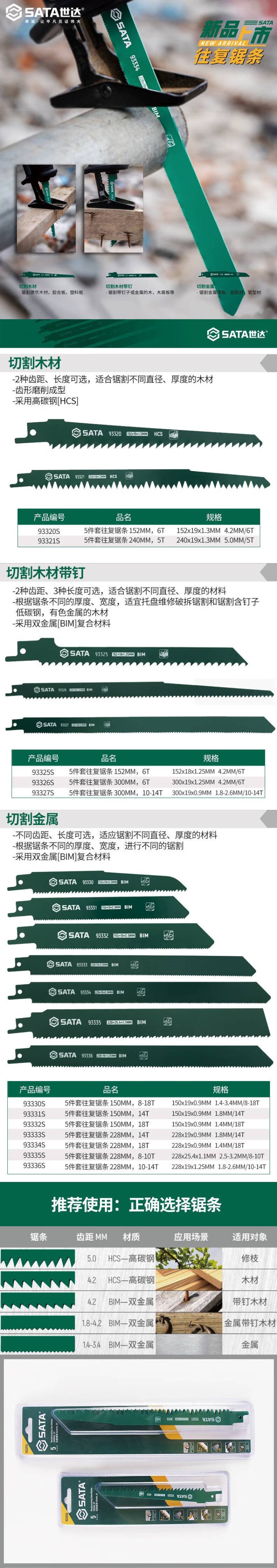 世达 5 件套往复锯条 228MM, 8-10T 93335S