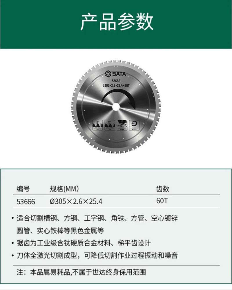 世达 圆锯片?305×2.6×25.4×60T 53666
