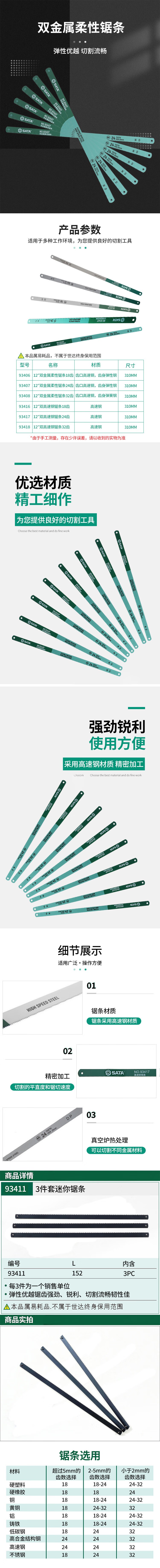 世达 3件套迷你锯条6" 6寸 93411