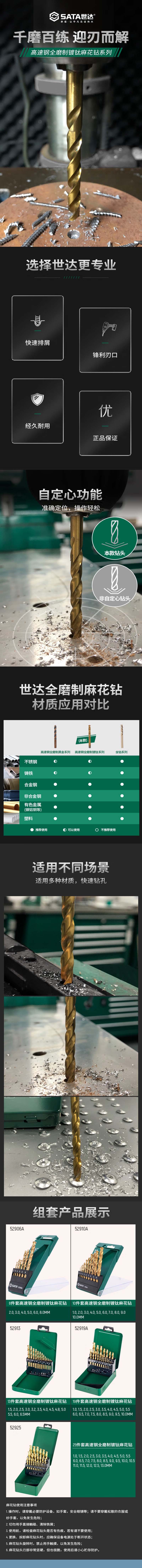 世达 19件高速钢全磨制镀钛麻花钻组套 52919A