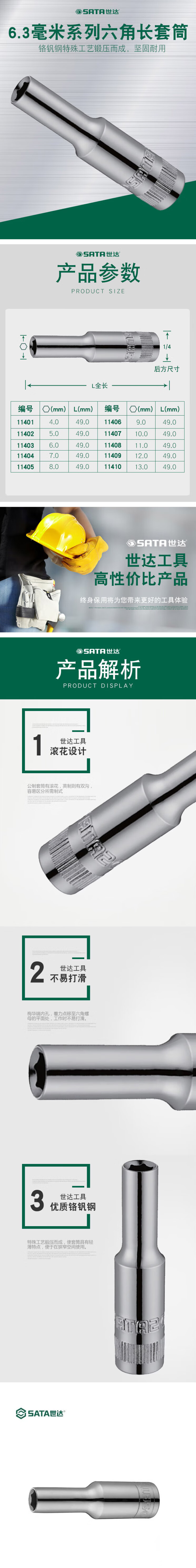 世达 6.3MM系列6角长套筒4.5MM 11411