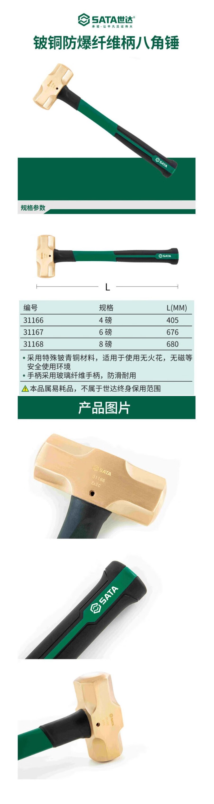 世达 铍青铜防爆纤维柄八角锤8磅 31168