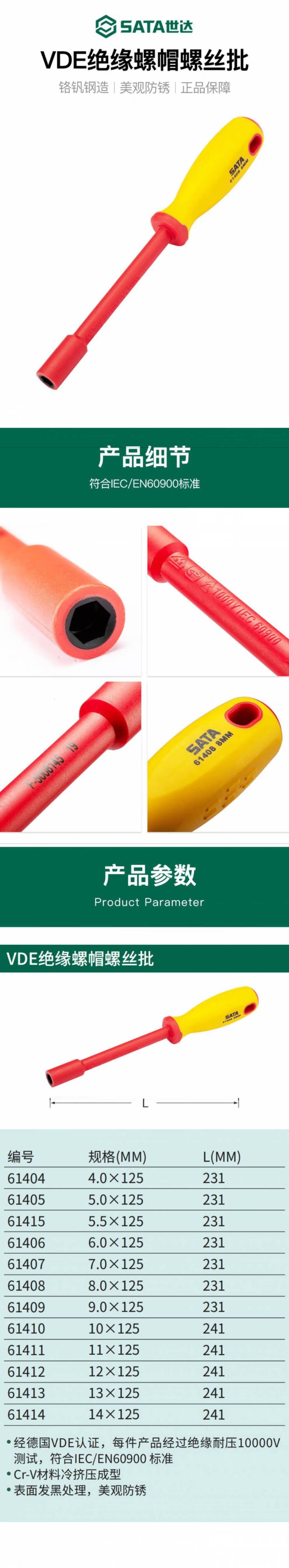 世达 VDE螺帽螺丝批11*125MM 61411