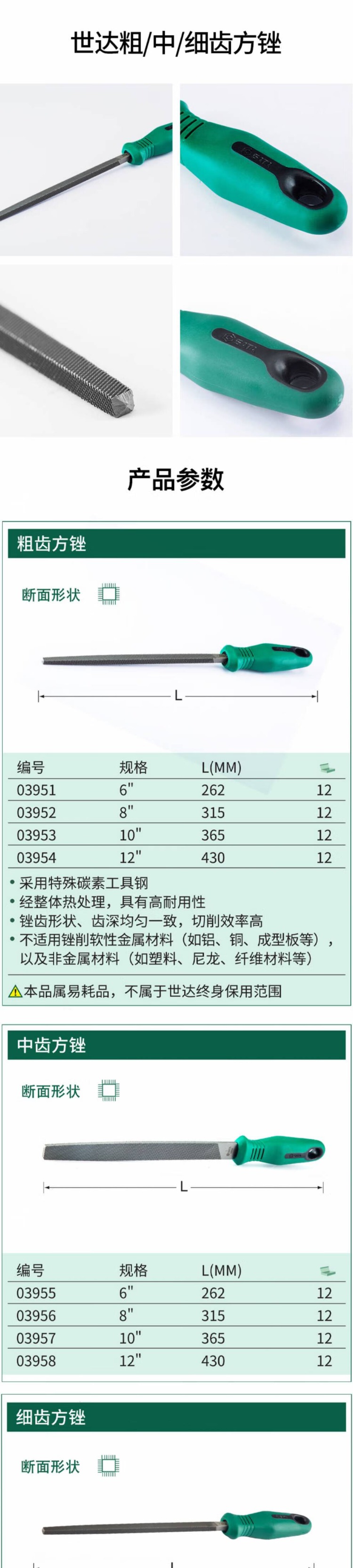 世达 中齿方锉6" 6寸 03955