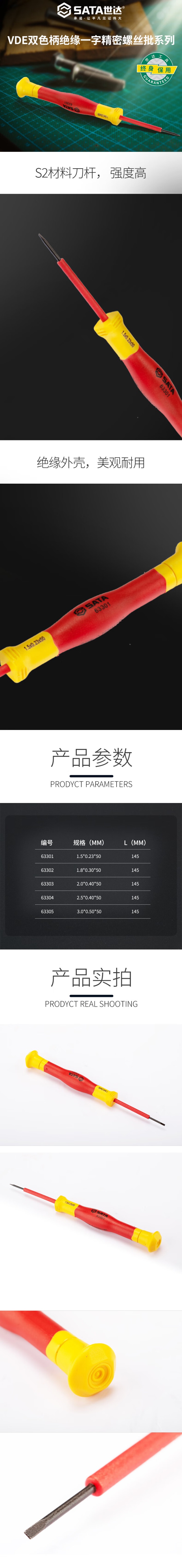 世达 VDE双色柄绝缘一字精密螺丝批2.5*0.40*50mm 63304