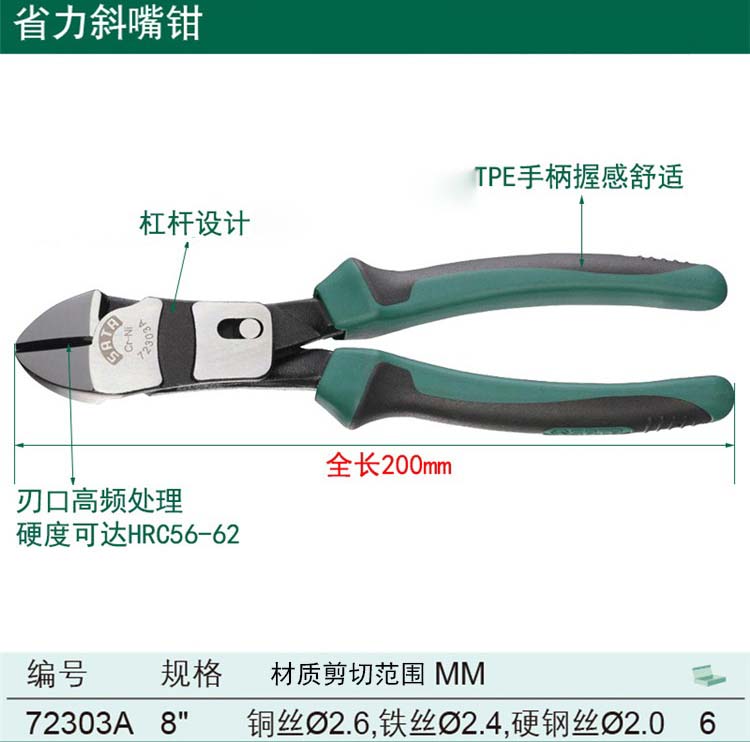 世达 超级省力斜嘴钳8"★替代款72303B 72303A