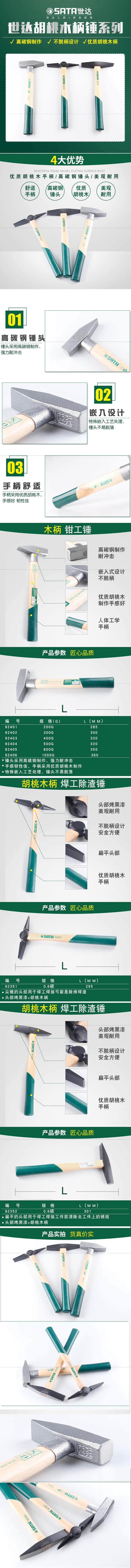 世达 木柄钳工锤1000克 92406