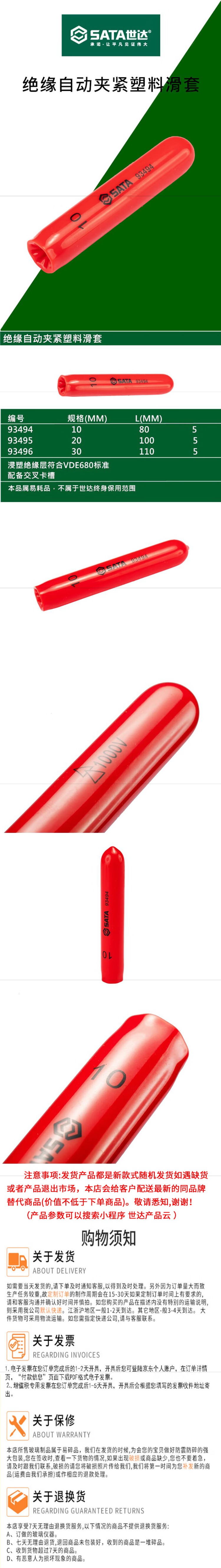 世达 浸塑型单色绝缘塑料自动夹紧滑套30mm 93496
