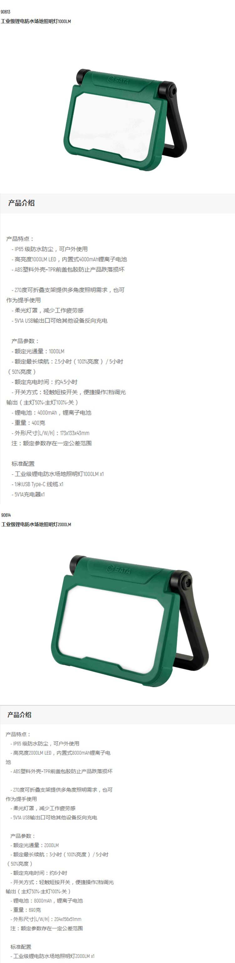 商品名称: 工业级锂电防水场地照明灯2000LM★替代款90765A