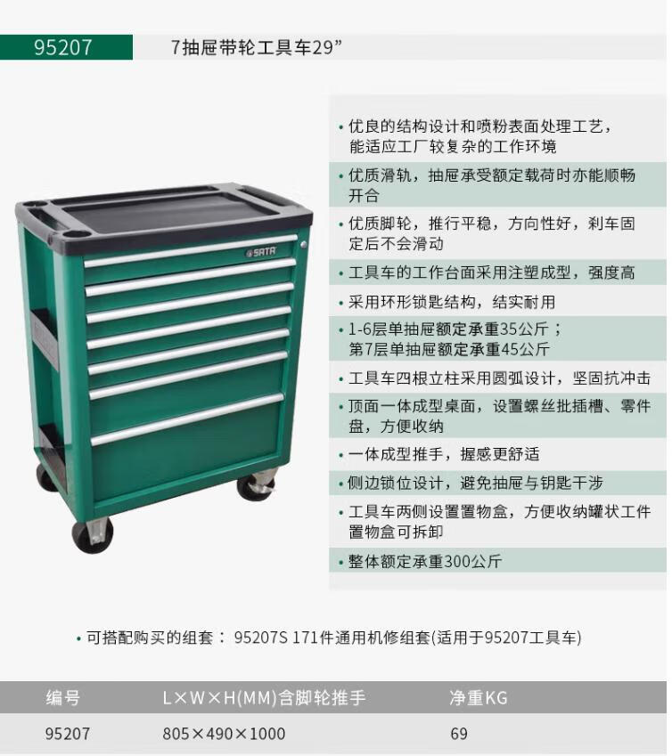 世达 7抽屉带轮工具车29" 29寸805x490x1000MM 95207