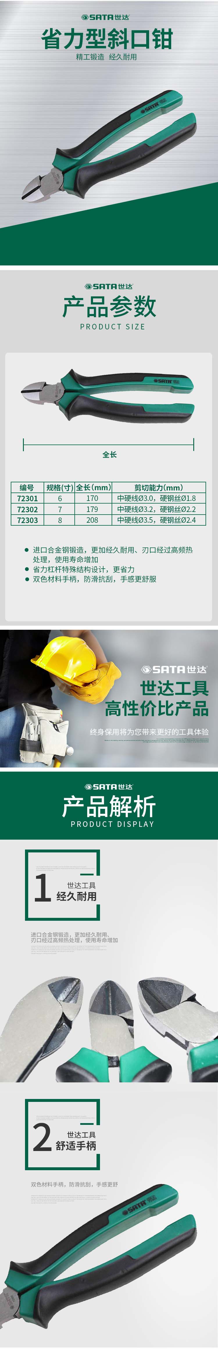 世达 省力型斜嘴钳8" 8寸 72303