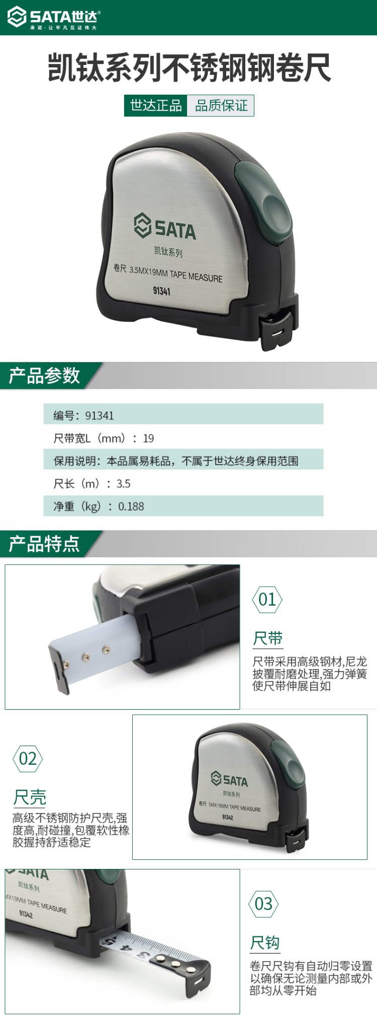 世达 "即将下市"凯钛系列不锈钢钢卷尺3.5Mx16MM(★替代款91341A,预计8月开放订购) 91341