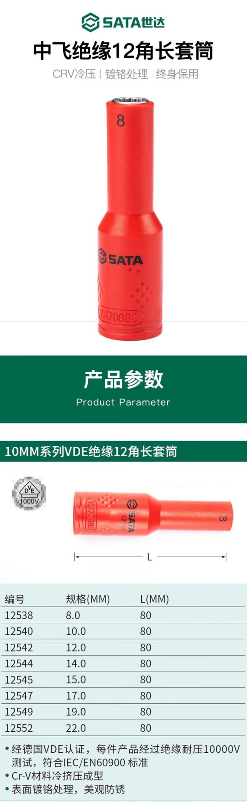 商品名称: 10MM系列VDE绝缘12角长套筒12MM