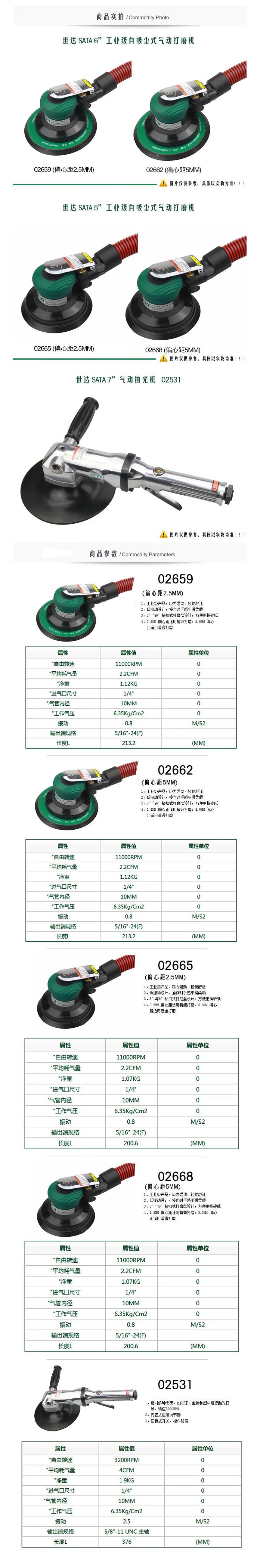 世达 5" 5寸 工业级自吸尘式气动打磨机(偏心距5mm) 02668