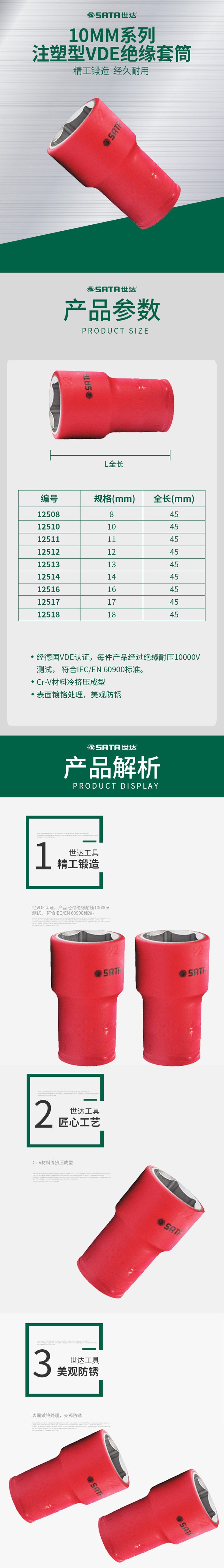 商品名称: 10MM系列VDE绝缘6角套筒21MM
