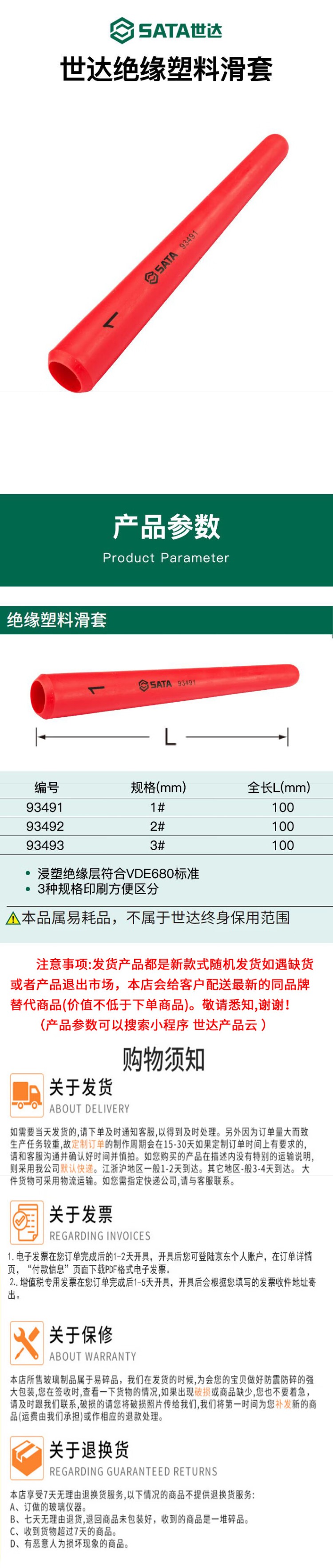 世达 浸塑型单色绝缘塑料滑套2# 93492